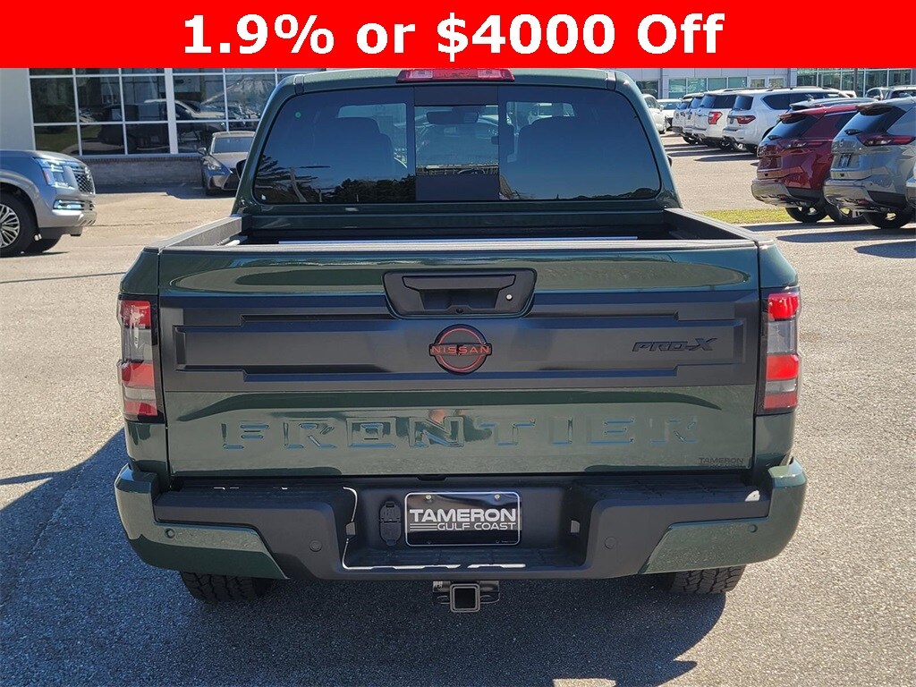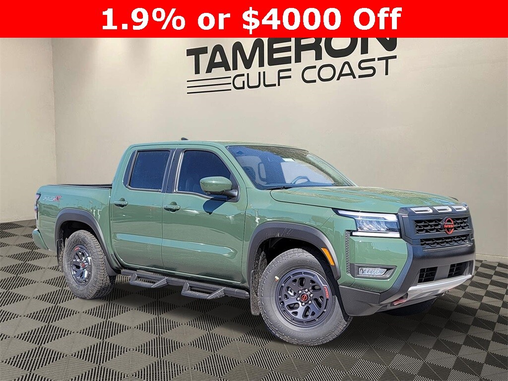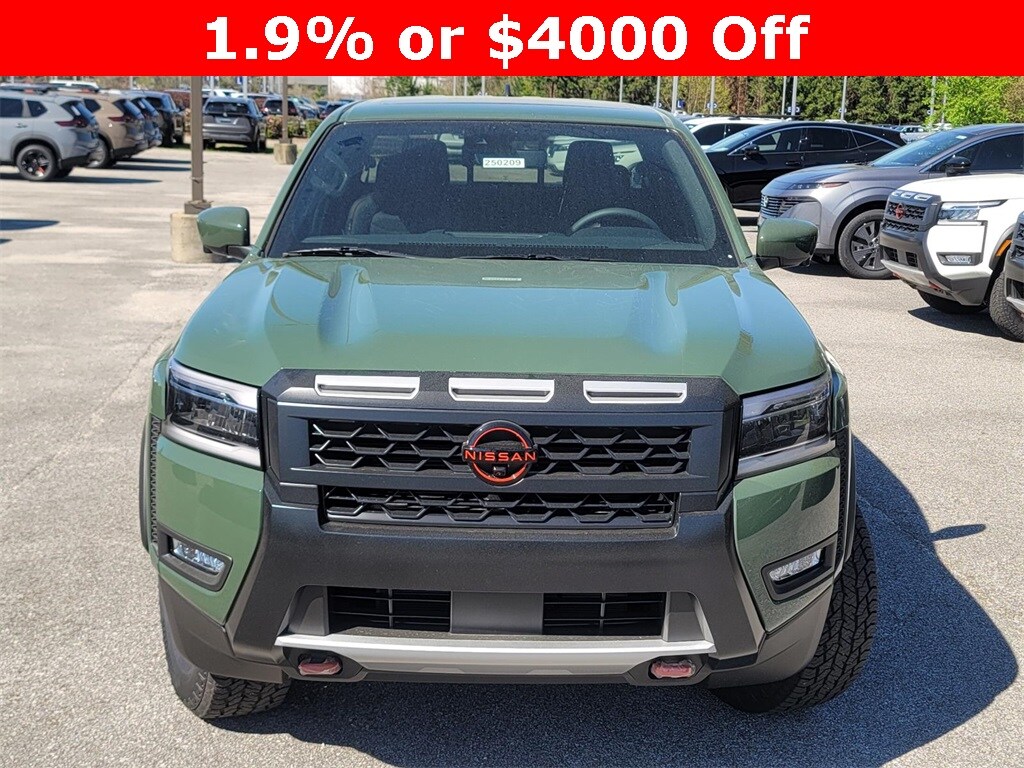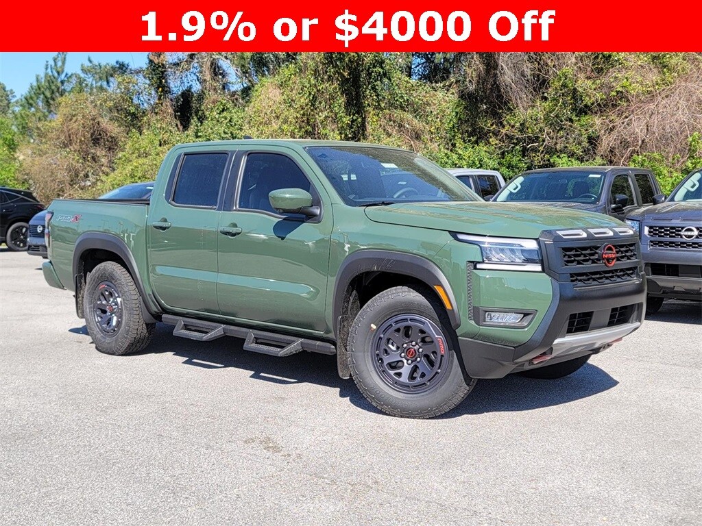 Tactical Green Metallic 2025 Nissan Frontier PRO-X RWD 9-Speed Automatic with Overdrive 3.8L DI DOHC 24V V6 Price includes: $3500 - Nissan Customer Cash. Exp. 11/03/2025 $500 - Nissan MY25 Frontier Selldown Bonus Cash (PRO Trims). Exp. 11/03/2025
